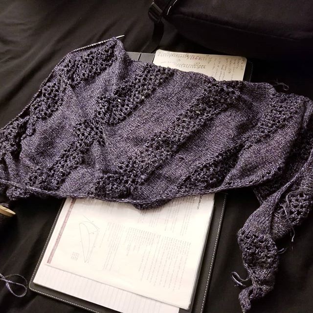 #progresspic #shawl #knitting #yarn #sockweight #yarniapdx #knittersofinstagram #handmade #knittingofinstagram #purple #gray